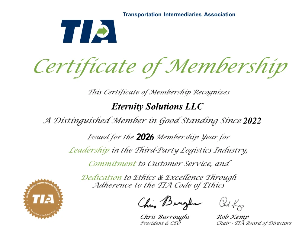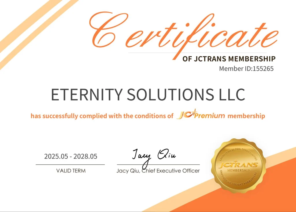 Eternity Logistics is recognized for industry excellence, holding trusted certifications and awards that reflect our commitment to integrity, quality service, and reliable logistics performance.